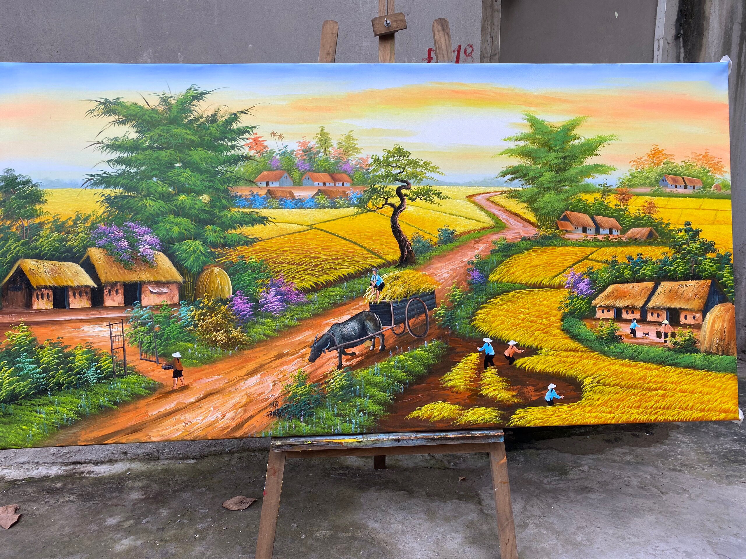 Tranh đồng quê chợ quê việt nam la bức tranh vẽ chất liệu sơn dầu tả cảnh chợ chiều quê hương việt nam sinh động và vui nhộn tranh treo trang trí phòng khách đệp, tả cảnh lang quê sinh động hội hợp chợ tạo sự sinh động ấm cúng bức tranh tranh vẽ sơn dầu đẹp ý nghĩa cho người nhìn, TRANH Vẽ sơn dầu tả cảnh đồng lúa chín vàng thu hoạch mùa màng gặt hái….