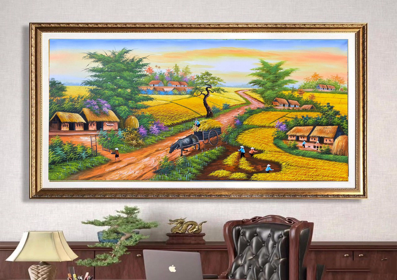 Những bức tranh sơn dầu đồng quê thường được vẽ bằng chất liệu cao cấp, đường nét tinh tế, màu sắc chân thực, mang lại cảm giác ấm áp và gần gũi cho không gian sống. Tranh phù hợp trang trí phòng khách, phòng làm việc hoặc làm quà tặng ý nghĩa cho người thân, đối tác. Sở hữu một bức tranh đồng quê mùa vụ gặt lúa chính là cách lưu giữ vẻ đẹp quê hương Việt Nam trong từng nét cọ, gợi nhớ ký ức tuổi thơ và tình yêu đất nước.